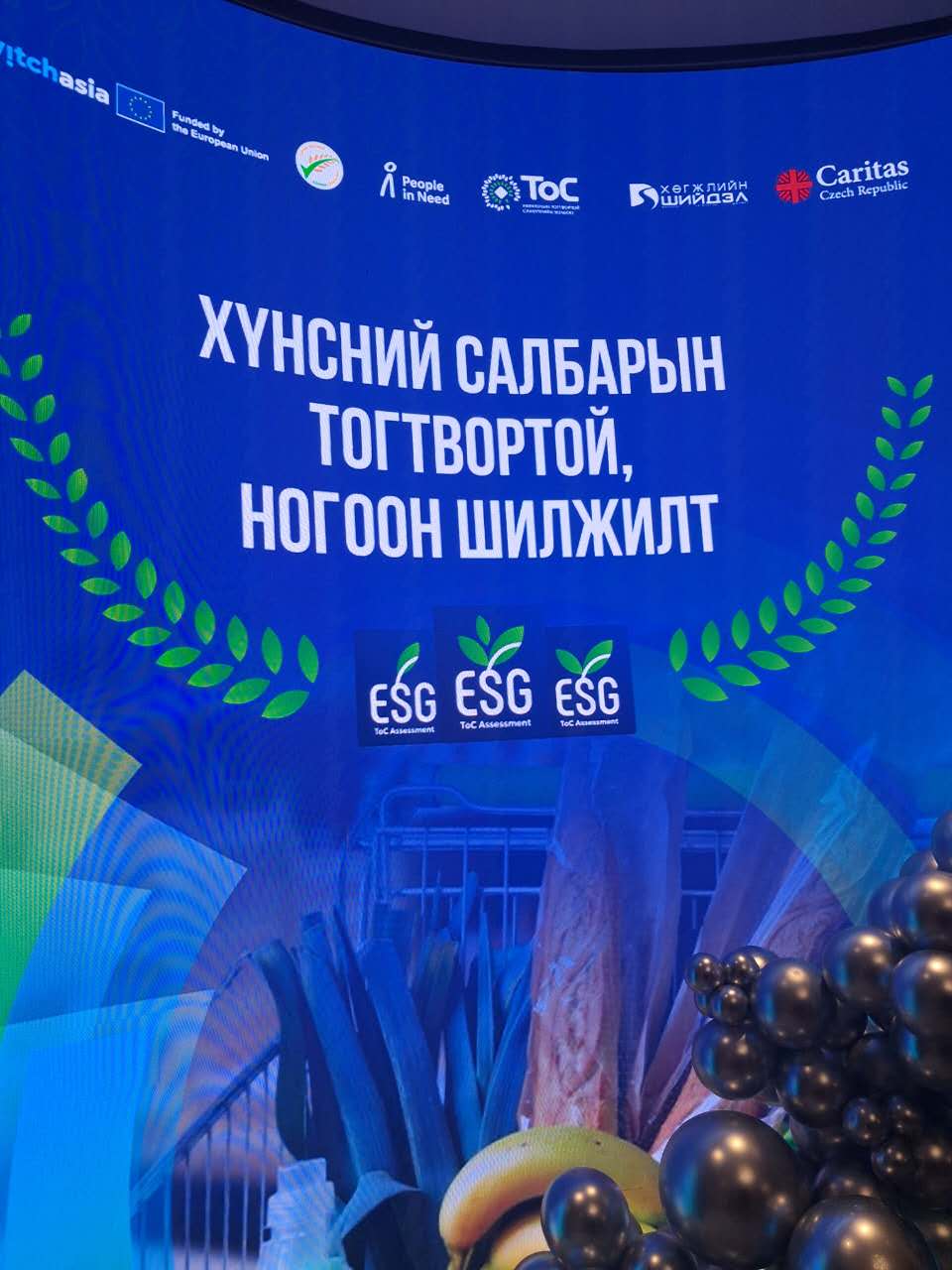 Хүнсний салбарт Байгаль орчин, Нийгэм, Засаглал (ESG)-ын үнэлгээ, тогтолцоог нэвтрүүлэх зорилгын хүрээнд Тос Холбоо /MSFA/, Development Solutions NGO – Хөгжлийн Шийдэл ТББ, People in Need, Caritas Czech Republic in Mongolia болон Европын Холбооны EU Switch–Asia Programme, Delegation to Mongolia байгууллагуудын хамтран хэрэгжүүлж буй “Эдийн засгийн ногоон шилжилт” төсөлд шалгарсан хүнсний салбарын 22 компани өөр өөрсдийн чиглэлээр үнэлгээ хийлгэж, баталгаажуулалтын гэрчилгээ гардан авч байгаа нь салбарын хувьд түүхэн ач холбогдолтой үйл явдал болж байна.